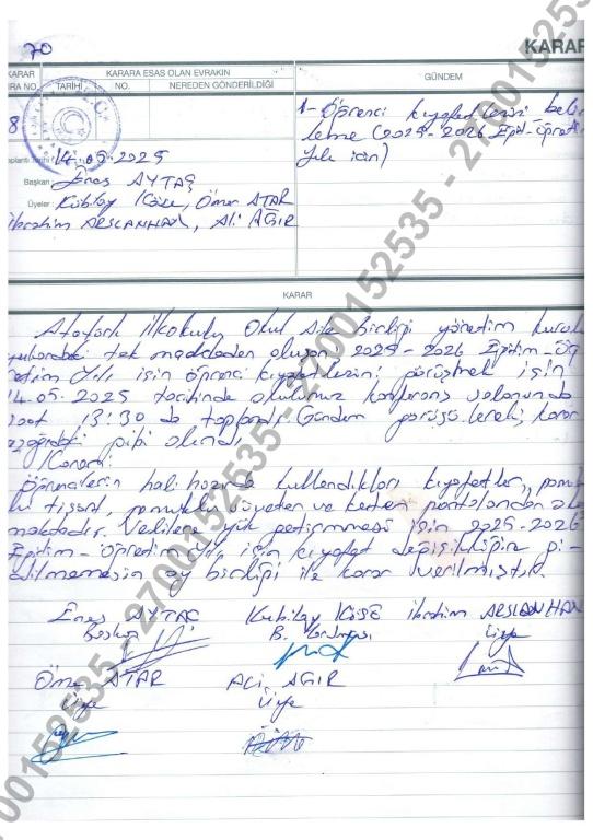 OKUL AİLE BİRLİĞİ KARARINCA YENİ YÖNETMELİĞE GÖRE BELİRLENEN...